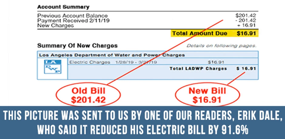 He goes on to say "The big power companies are scamming you. Yes, that's right. Believe it or not, they have been using a secret to cheat you every time you run your lights, dishwasher, blender, vacuum and anything else that draws power. This is why your power bill is so expensive every month and keeps rising with some residents paying as much as $500 a month in electric bills. Every American can slash their electricity bill by 90% using this revolutionary technology. You're welcome, America."